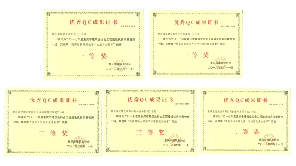 2018年4月12日,重庆市建筑业协会“2017年度建设优秀质量管理小组表彰暨成果发布会”隆重召开。重庆pg电游开户建设有限公司荣获“2017年度建设优秀质量管理小组”一等奖两名,二等奖三名。...